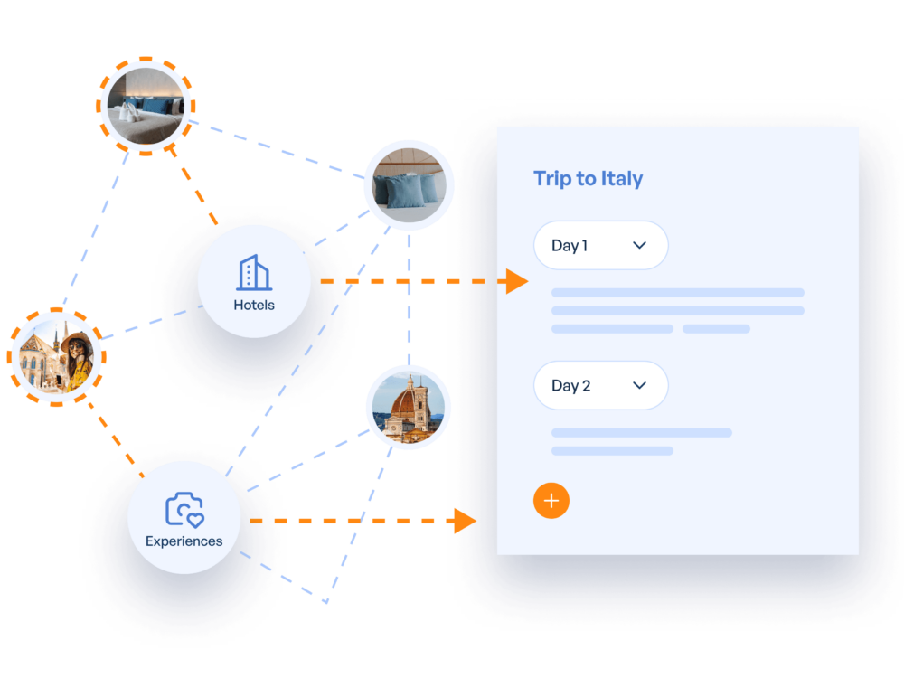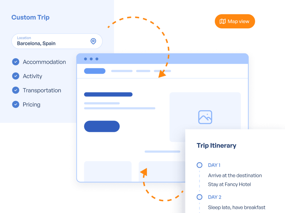 The TripMatrix travel planner simplifies the complexities of itinerary creation. Use it to integrate internal and external products and easily add accommodations, transportation, experiences, and more. Fine-tune itineraries, generate offers, make adjustments based on customer feedback, and manage payments—all with a single, easy-to-use tool.